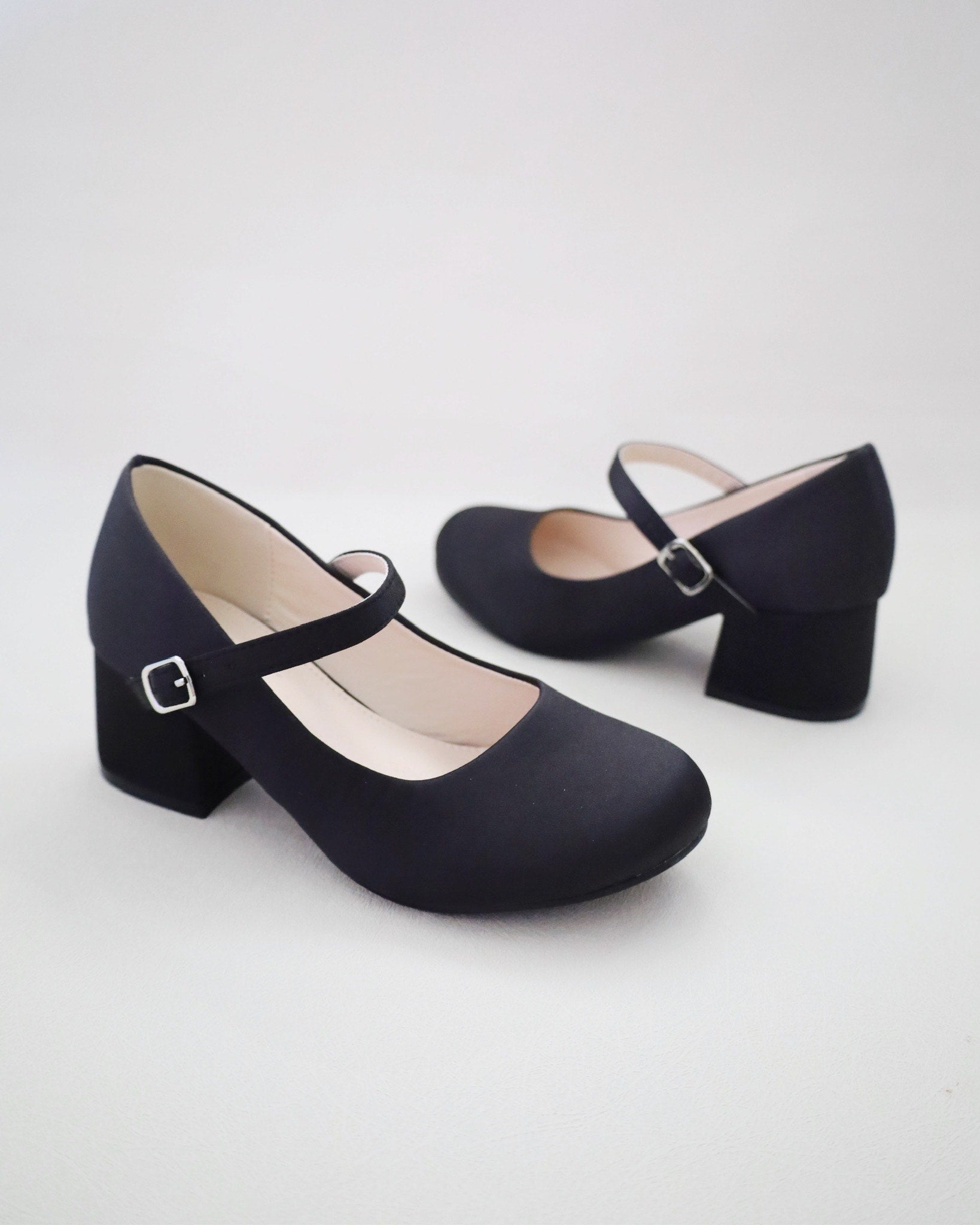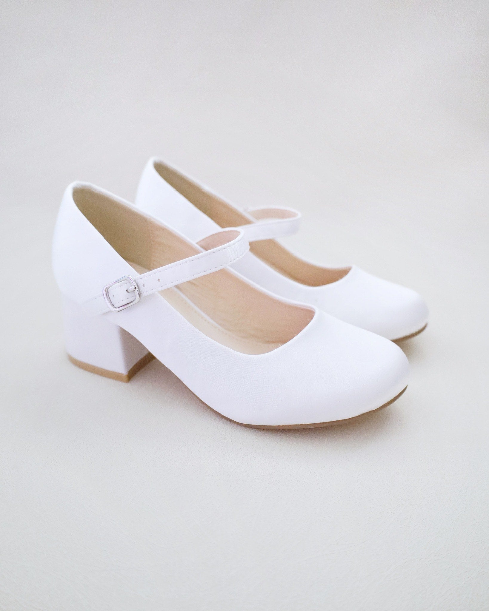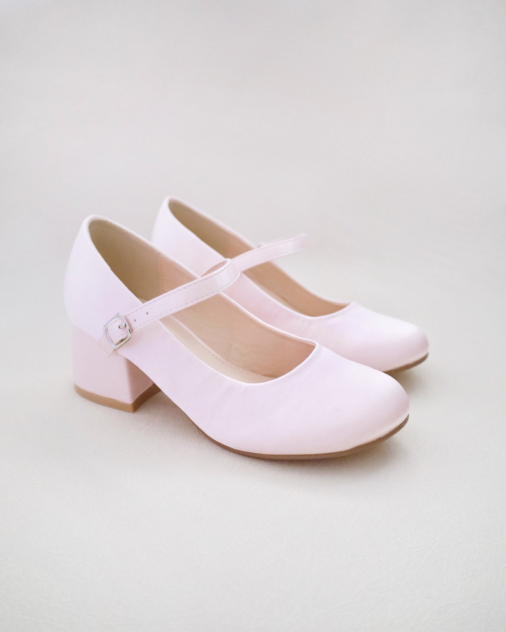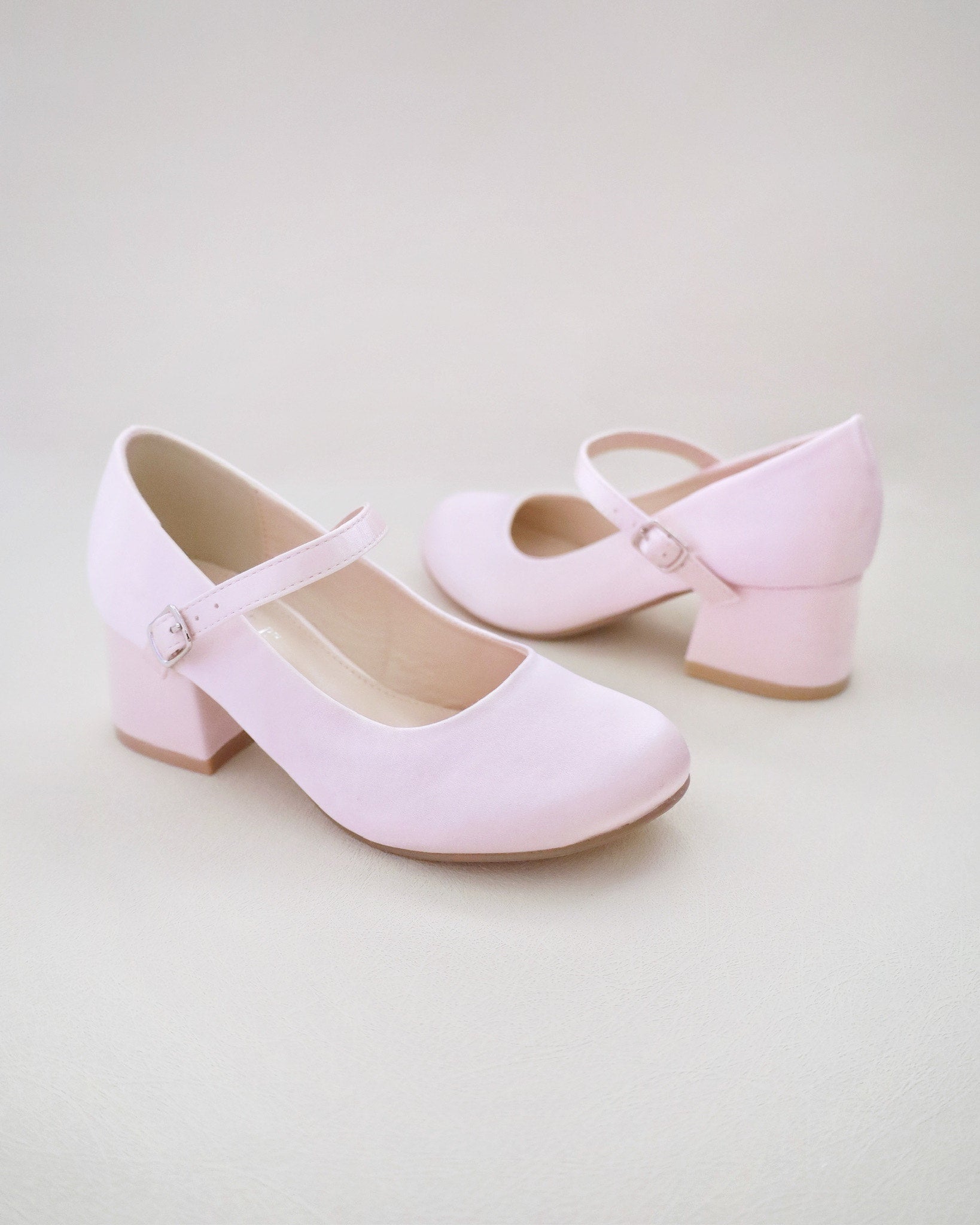 This flower girls satin block heels are charming and elegant shoes designed for little princess for birthday party, holiday party, wedding party, flower girls, quinceanera shoes, and other special occasions. The satin material adds a sophistication to the overall look, making them perfect for formal occasions.