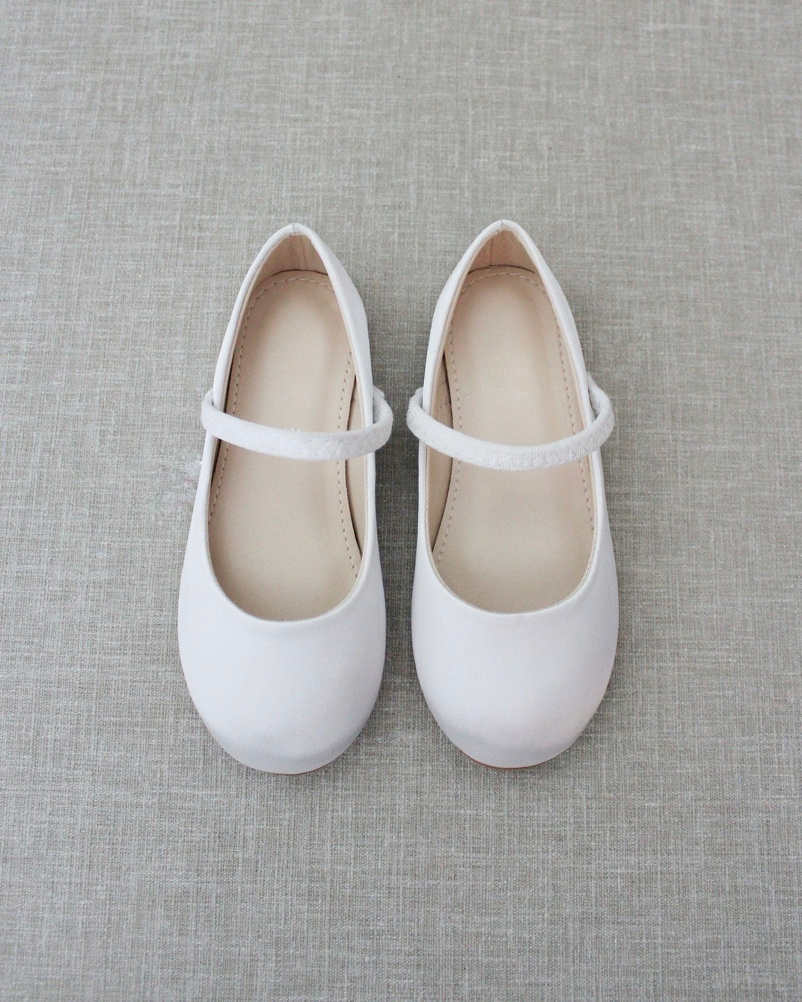 Satin maryjane flats which is perfect for comfort and gorgeous simplicity. Perfect for flower girls, birthday party, costume shoes, or any special occasions.